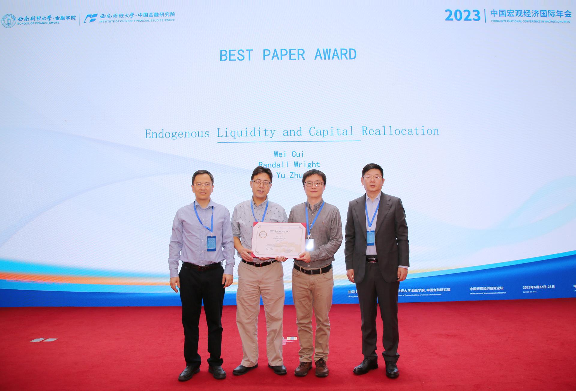 本届年会举行了优秀论文颁奖仪式,由尹庆双、苗建军和王擎为最佳论文奖(Best Paper Award)和最佳新秀论文奖(Best Junior Scholar Paper Award)获得者颁奖。最佳论文为Wei Cui, Randall Wright 和Yu Zhu的合作论文“Endogenous Liquidity and Capital Reallocation”。最佳新秀论文为Xincheng Qiu的独作论文“Vacant Jobs”。
