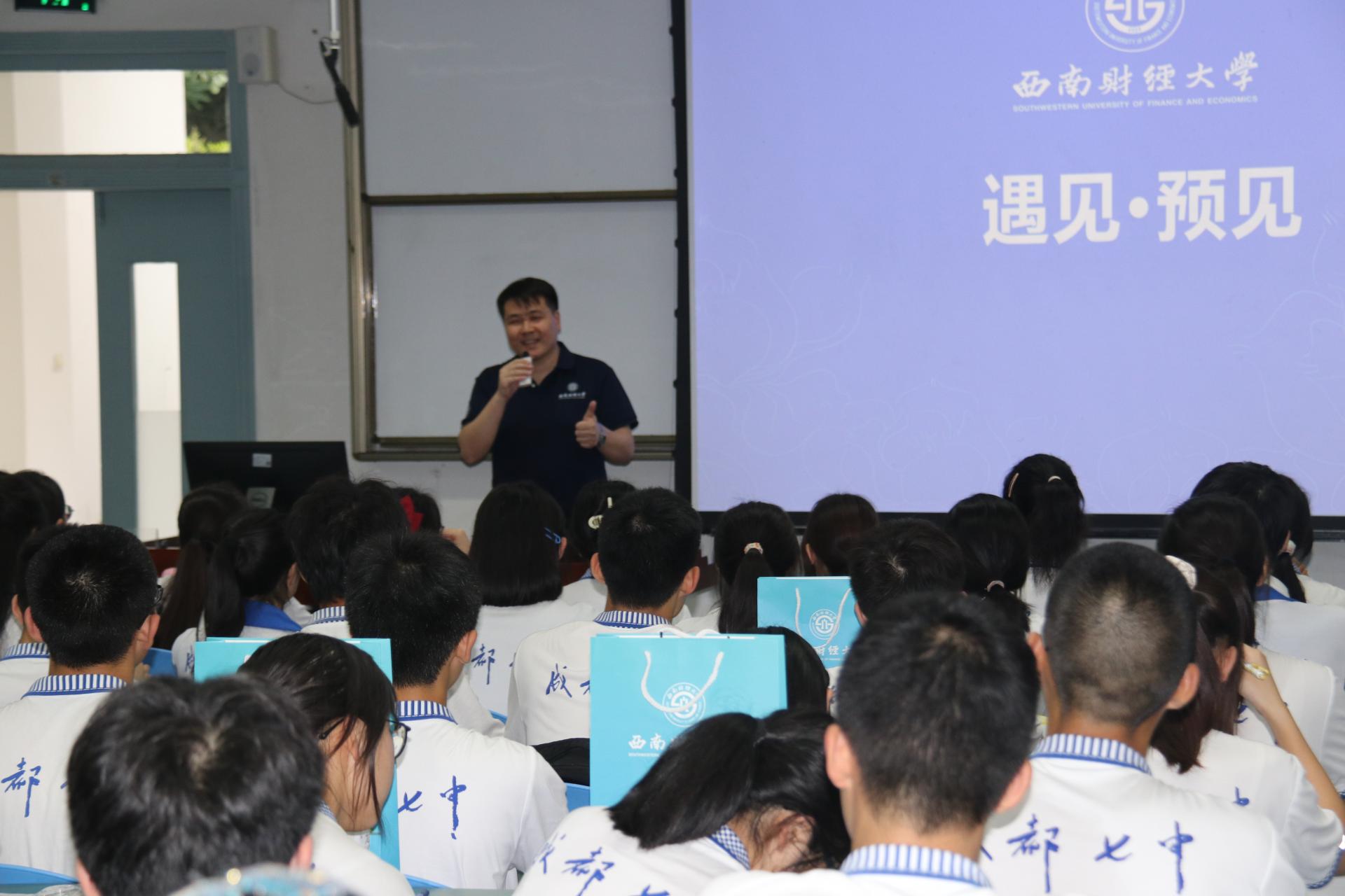 在接下来的专业科普讲座中,金融学院与中国金融研究院党委副书记陈卓首先致欢迎辞,他向大家致以热烈的欢迎,为同学们介绍了学校的发展历程、优势学科,欢迎大家报考西南财经大学。