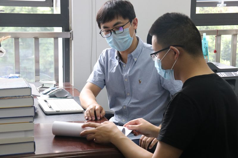 在徐秋华老师的办公室里,刚刚返校的2017级金融工程专业陈方园同学正拿着写好的毕业论文在向他请教关于资本市场与期权市场之间的均值与溢出效应的问题,这是他在准备毕业论文答辩时没太想明白的地方,徐老师为他进行了详细的分析指导,帮他解决了困扰已久的问题。陈方园同学刚离开,2016级金融工程专业本科生周春羽同学又来到徐老师办公室,向他请教几个关于统计机器学习的问题,这是她未来研究生阶段准备研究的方向,她在徐老师的指导下已经开始提前学习起来。
