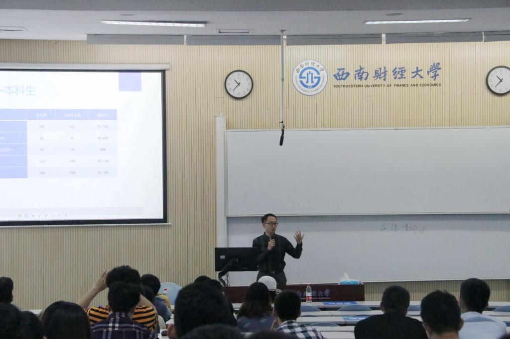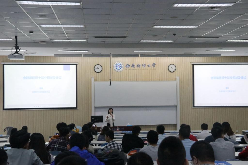 谭敏副书记介绍了我院研究生就业的基本情况和主要特点;强调疫情因素对就业形势有一定影响;但我院研究生就业率长期保持高位、就业单位对金融学生认可度好,望同学们保持信心,积极应聘;提醒同学们一定重视自己的兴趣爱好、发展意愿选择适合的就业领域,为更好职业发展打下良好基础。