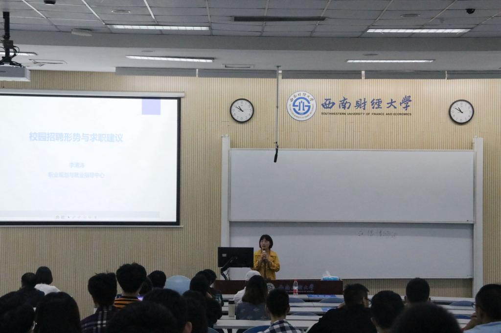学院特别邀请学校职业规划与就业指导中心李清涛老师做专题讲座,介绍学校校园招聘情况。李老师以第三方机构调研数据介绍了就业形势和学生求职意愿的主要变化;结合校园招聘的数据分析,分析了校园招聘的特点,重点呈现了行业岗位特点、地域分布情况等;提醒同学们慎重做出个人发展选择,珍惜应届生的身份优势,打破对专业岗位的过度限制,充分了解学校和地方相关人才政策,通过多方努力帮助自己达成心愿。