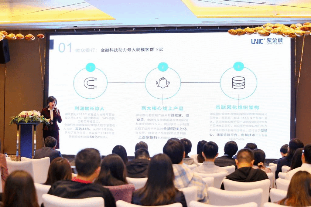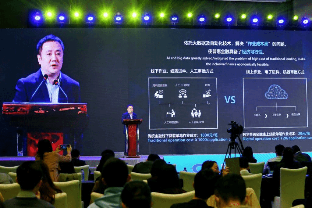 四川新网银行风控科学部总经理刘嵩博士以“新网银行的金融科技创新”为题介绍了四川新网银行的金融科技应用。新网银行作为全国第三家互联网银行,累计放款超过1亿笔,平均每笔信贷审批时长20秒,服务了5千万个人和小微客户,通过纯线上作业的方式,节省打印纸张、减少能源消耗、节约存档空间,实现了“绿色”金融,是名副其实的数字普惠银行。