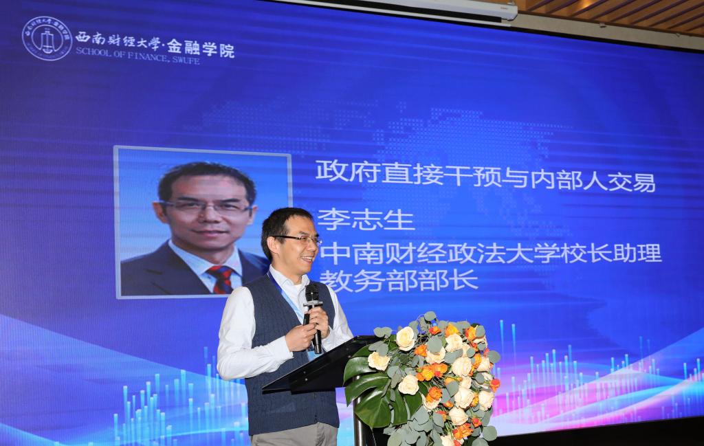 上午,西南财经大学金融学院院长赵静梅教授、金融学院副院长罗荣华教授分别主持了主题演讲的上半场和下半场。在上半场主题演讲中,天津大学管理与经济学部副部长熊熊教授以《多源信息交互对股票价格波动的影响》为题,阐述了新闻、公司公告和分析师报告对股票价格波动的异质性影响;中南财经政法大学校长助理、教务部部长李志生教授以《政府干预与内部人交易》为题,阐明政府救市、“国家队持股”对内部人交易的外部性影响。在下半场主题演讲中,中山大学高级金融研究院副院长、岭南学院金融系主任杨子晖教授以《系统性风险跨行业传染与“级联效应”》为题,从产业链结构视角阐述实体经济行业的风险传导关系;上海财经大学金融学院副院长朱小能教授以《Disaster Risk Matters Everywhere》为题目,阐释罕见风险对金融资产定价的影响;西南财经大学周铭山教授以《公司创新文本信息披露的价值:市场解读与识别》为题,层层剖析投资者低估创新活动文本信息价值的可能原因。