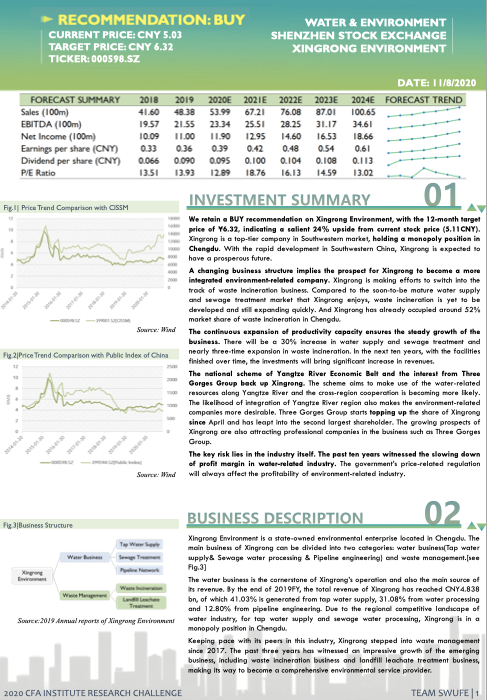 我校代表队完成了针对标的公司兴蓉环境(000598.SZ)的报告,杀出重围,顺利闯入决赛。