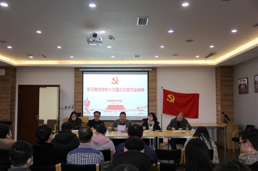 2020年12月29日,金融学院分党委举行支部书记会议,专题学习贯彻学校第十三届三次党代会精神;学院分党委各支部书记参加会议,分党委书记李原主持学习。