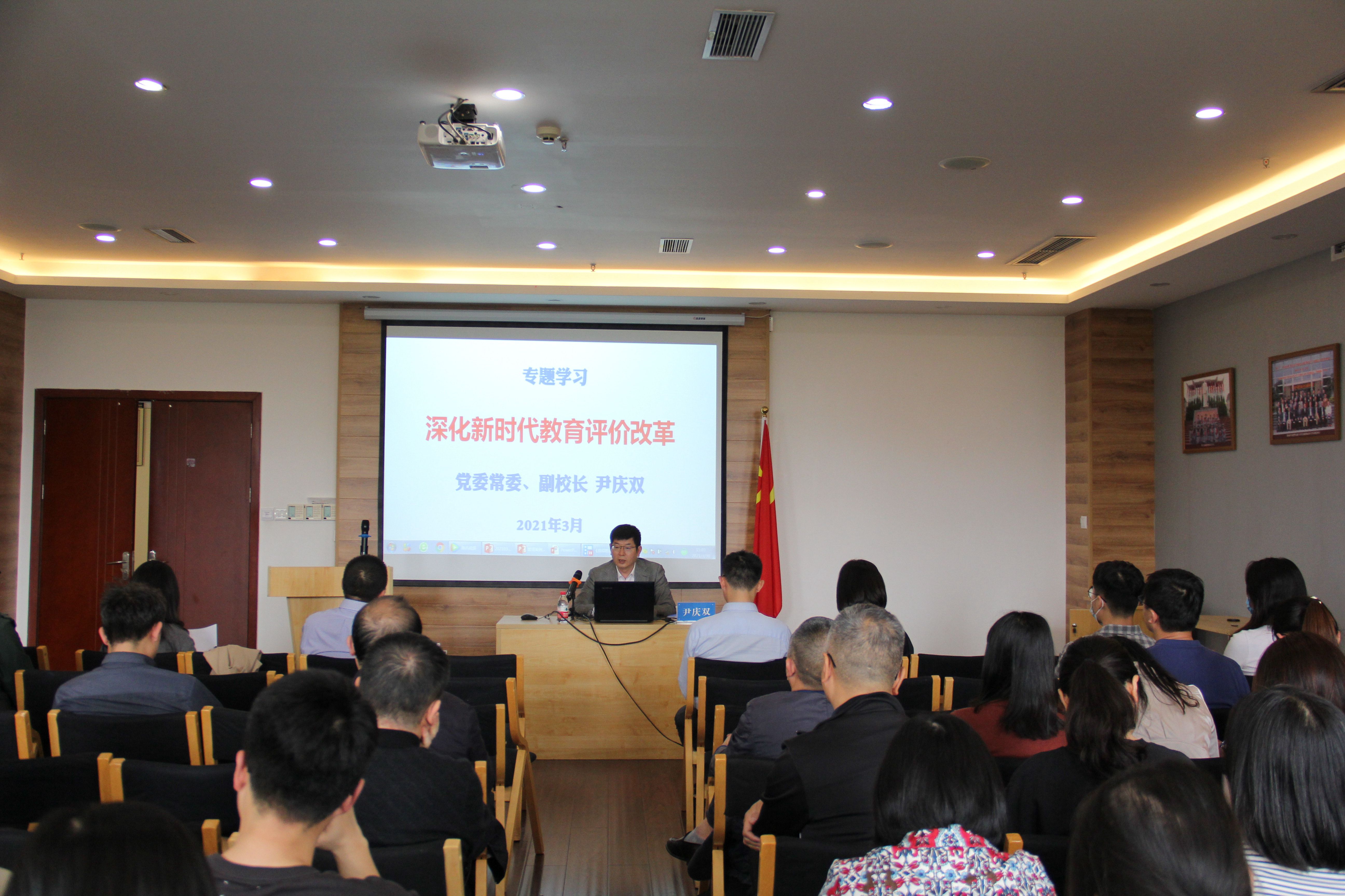 3月30日,金融学院举行深化新时代教育评价改革专题学习,党委常委、副校长尹庆双进行专题讲座,学院领导、学院全体教职工参加学习。