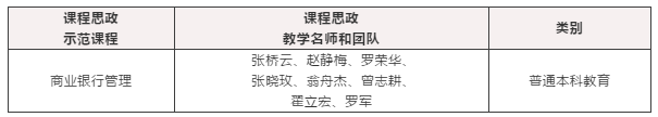 在团队的共同努力下《商业银行经营管理》课程先后获得四川省课程思政示范课程、国家线下一流课程。
