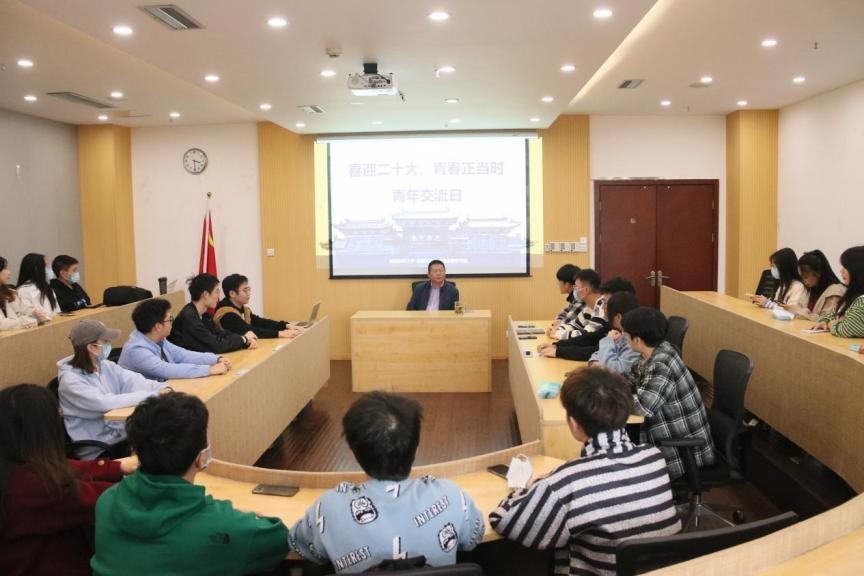 热烈的红色传达着新时代青年的斗志昂扬,青年学子,红心向党,在党的领导下,青年学子与时代同心同向同行,踔厉奋发,笃行不怠。金融学院与中国金融研究院为加强学院领导与青年学生之间的沟通交流,引导青年学生深入学习习近平总书记在庆祝中国共青团成立100周年大会上的重要讲话精神,以实际行动迎接党的二十大胜利召开,于10月11日举办“青年交流日”活动。在本次活动中,金融学院与中国金融研究院党委书记李原为同学们答疑解惑,并对同学们提出积极进取、严于律己与全面发展的希冀。