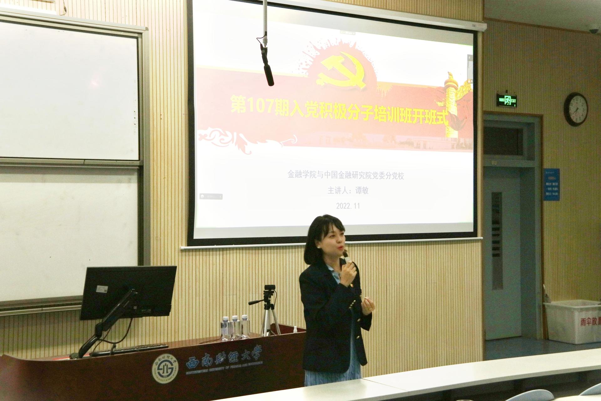 11月3日,金融学院、中国金融研究院分党校第107期入党积极分子培训班开班式在经世楼G102举行。金融学院与中国金融研究院党委副书记、纪委书记谭敏主持,全体积极分子培训班学员参加此次学习。