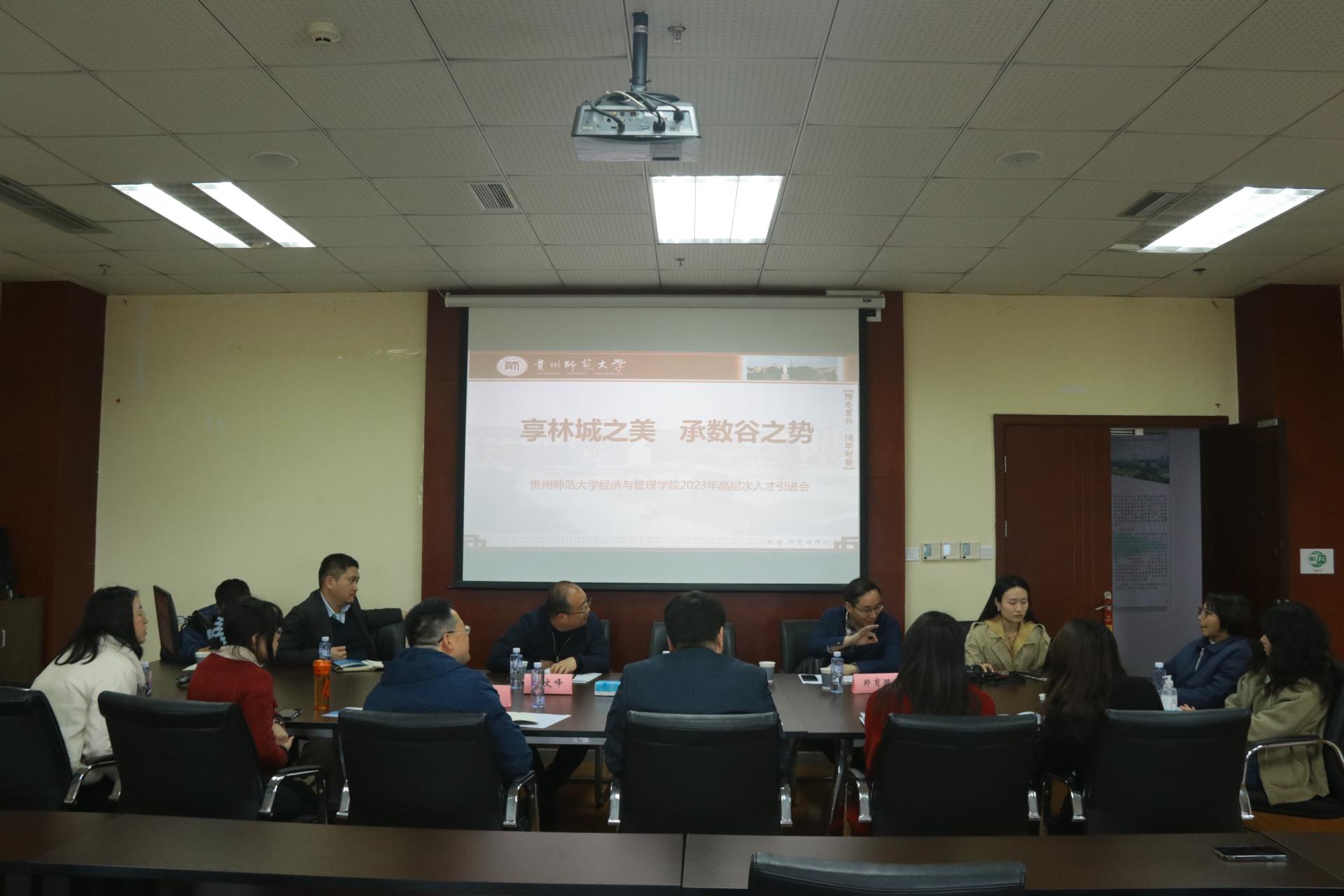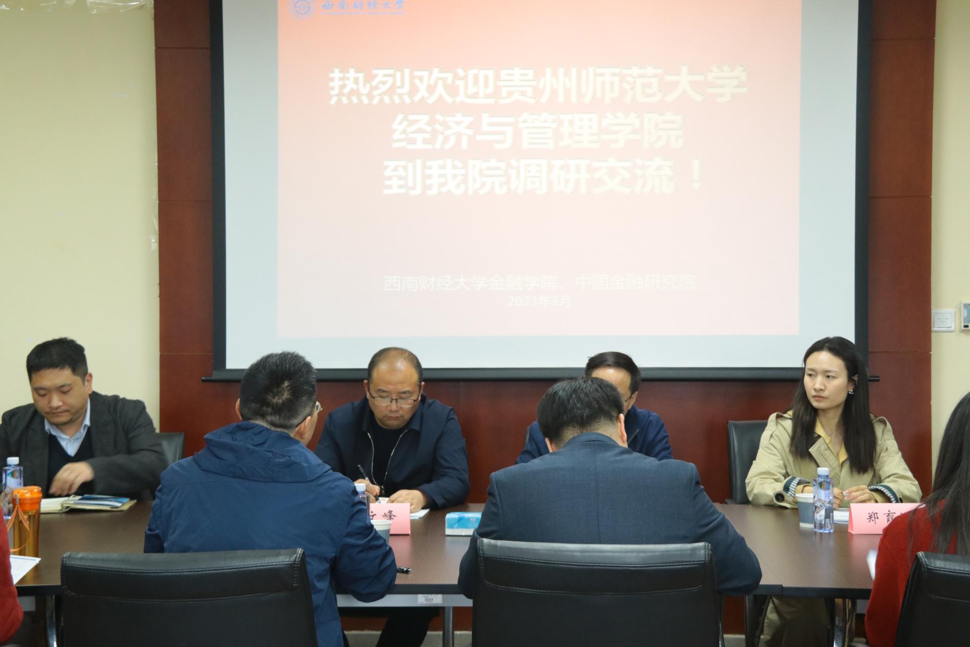 3月20日下午,贵州师范大学经济与管理学院2023年高层次人才引进会在格致楼618会议室举行。贵州师范大学经济与管理学院党委副书记赵本喜、经济系主任康文峰,西南财经大学中国金融研究院副院长董青马、金融学院与中国金融研究院党委副书记陈卓等参加座谈。