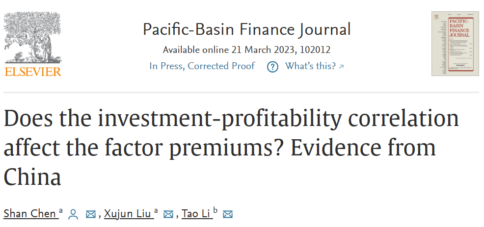 19级金融学(双语实验班)本科生、金融学术之星社团成员刘旭浚同学和金融学院陈汕副教授、香港城市大学的李涛教授合著论文Does the investment-profitability correlation affect the factor premiums? Evidence from China被接收,发表在外文B级期刊Pacific-Basin Finance Journal。金融学院本科生近年来多次在国际高水平学术期刊上发表学术论文,学院多年来坚持的本科生科研训练成效显著。