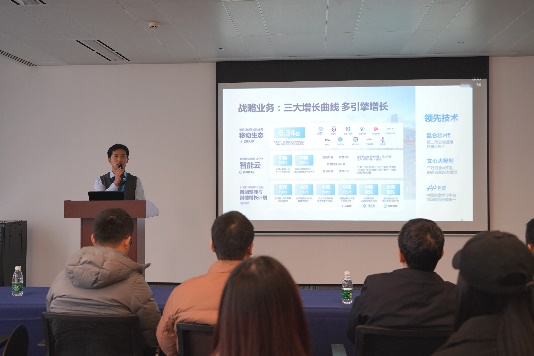 座谈会上,百度智能云川藏地区总经理李郅向王擎及师生致以热烈欢迎,他简要介绍百度公司的发展历程、业务特色和公司的重点业务百度智能云,从理解、生成、逻辑、记忆四个方面为我们详细介绍了大模型对传统业务的优化与提升,分析了人工智能带来的机遇与挑战,希望未来有更多学子加入这一领域,接力技术创新,用大模型赋能千行百业,投身国家重大战略建设。