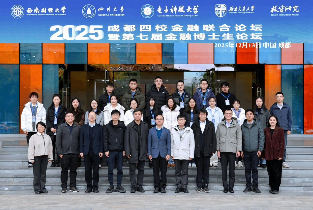 2025年12月13日,成都四校金融联合论坛暨第七届“金融博士生论坛”在我校柳林校区举行。论坛由西南财经大学、四川大学、电子科技大学、西南交通大学联合主办,西南财经大学金融学院、中国金融研究院、共青团西南财经大学委员会承办,四川大学经济学院、电子科技大学经济与管理学院、西南交通大学经济管理学院协办,相关院系负责人及师生代表参加会议。