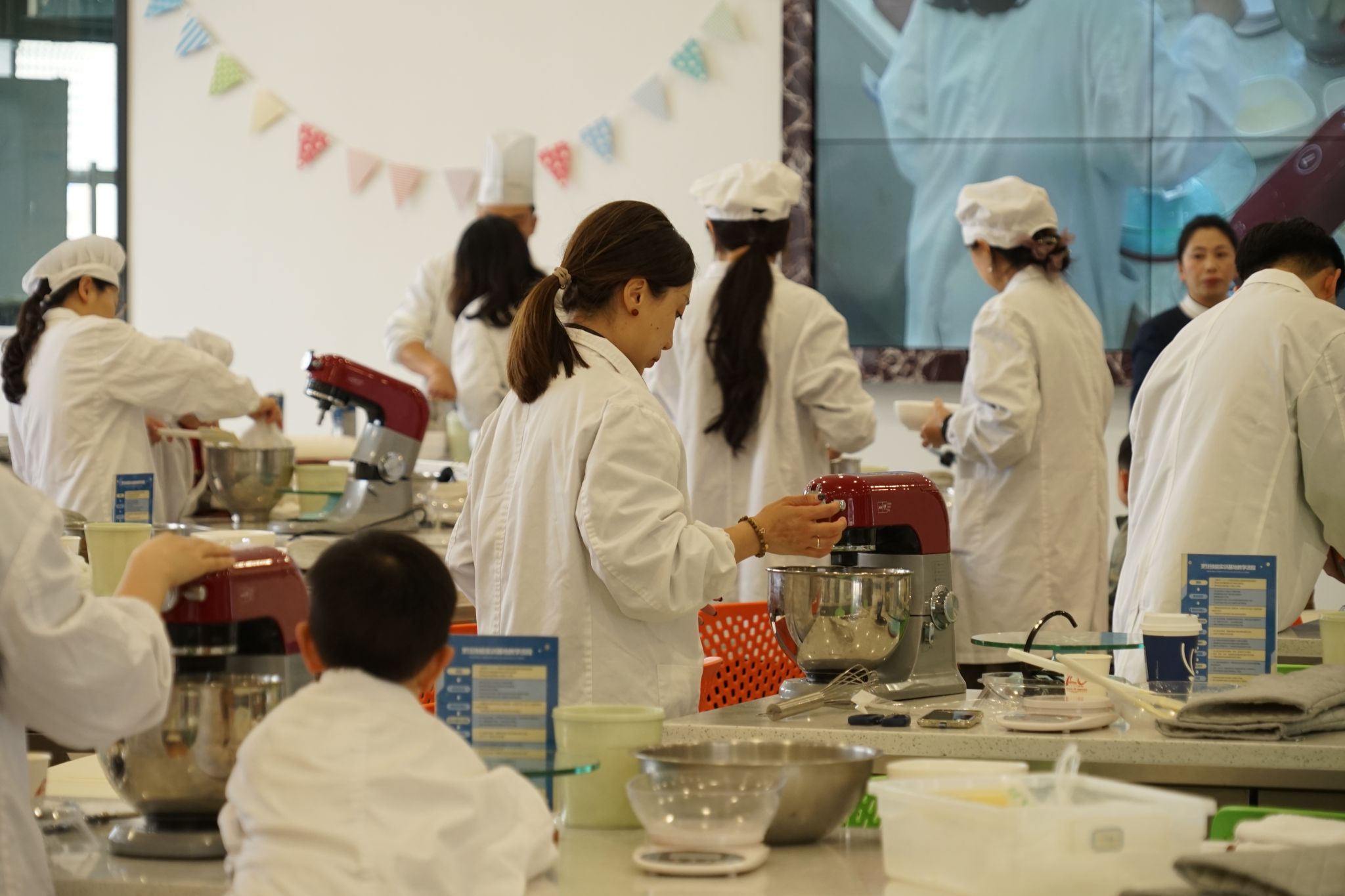 午后阳光洒落,参与活动的教职工携家属陆续到场,在温馨氛围中合影留念。简短开场后,烘焙环节正式开启。大家与同事、家人携手协作,共同完成面糊制作、曲奇塑形。孩子们好奇围观、协助装袋,天真模样为现场增添暖意。随着曲奇送入烤箱,甜香弥漫,大家品尝主题点心,分享工作生活趣事,气氛轻松融洽。