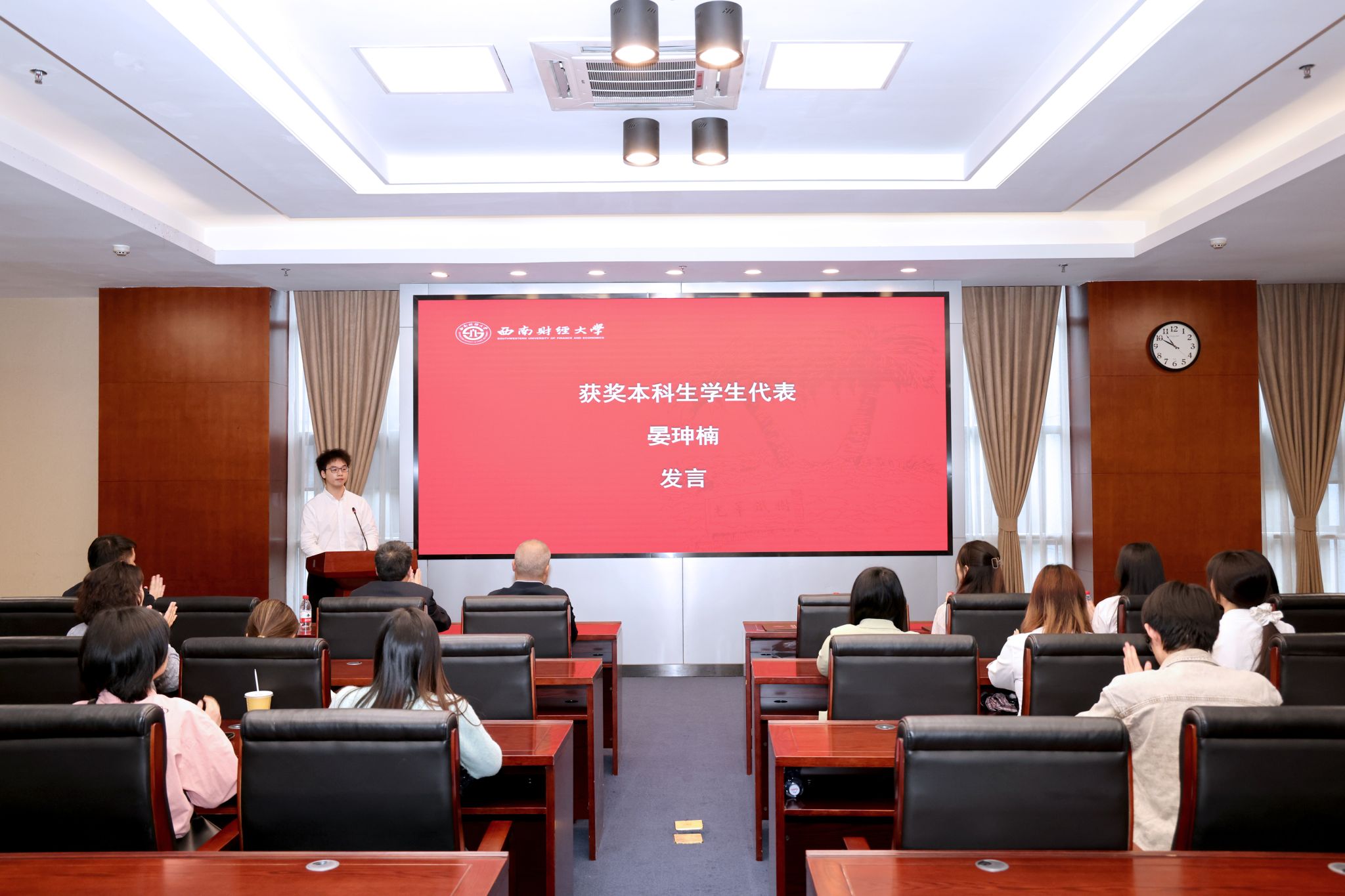 获奖学生代表、金融学院2022级本科生晏珅楠在发言中表示,荣获鸿儒奖学金是对自己学业与成长的肯定,将在以后的学习中传承鸿儒精神,践行“经世济民、孜孜以求”的西财精神,努力成长为兼具国际视野与本土情怀的新时代金融人才。
